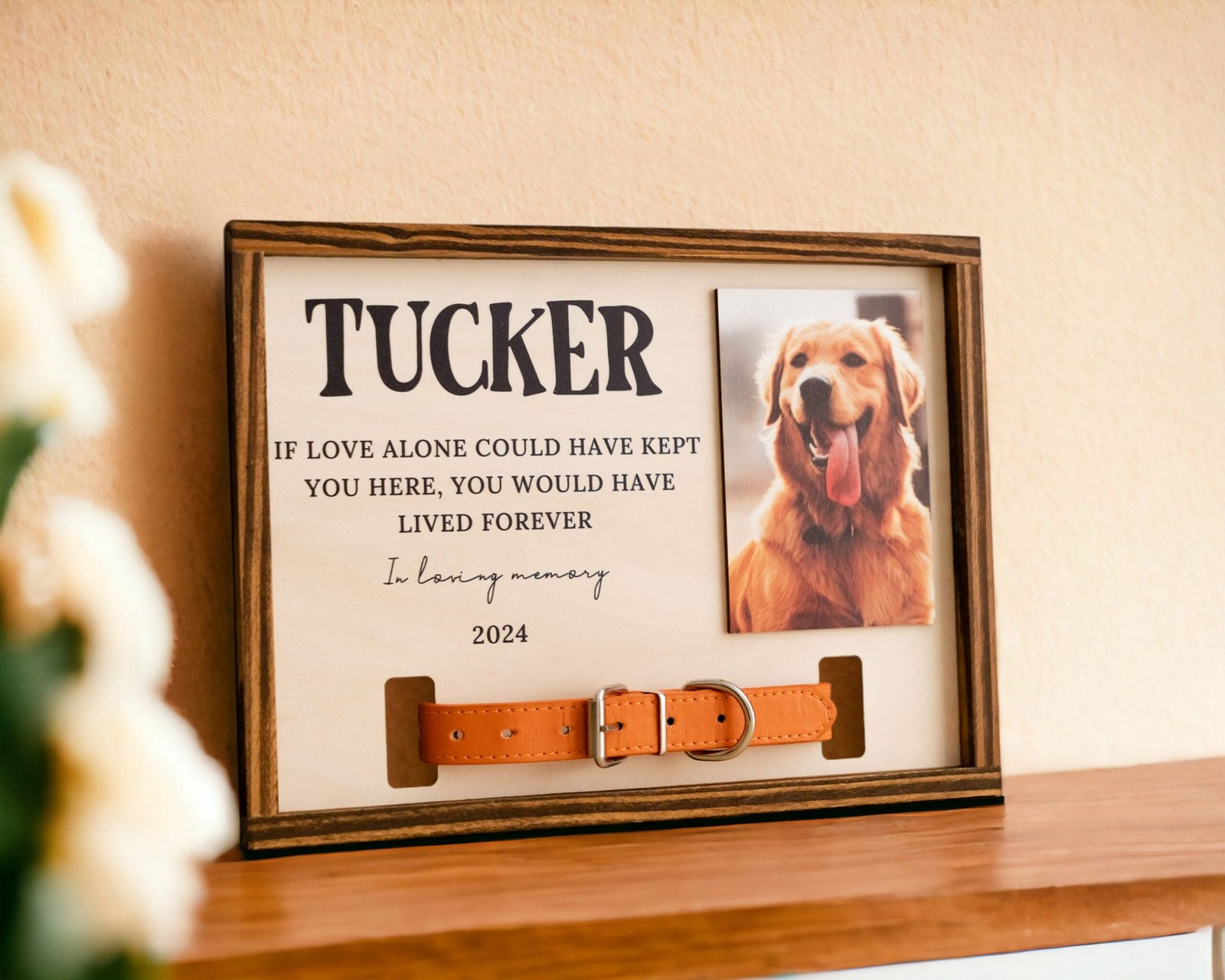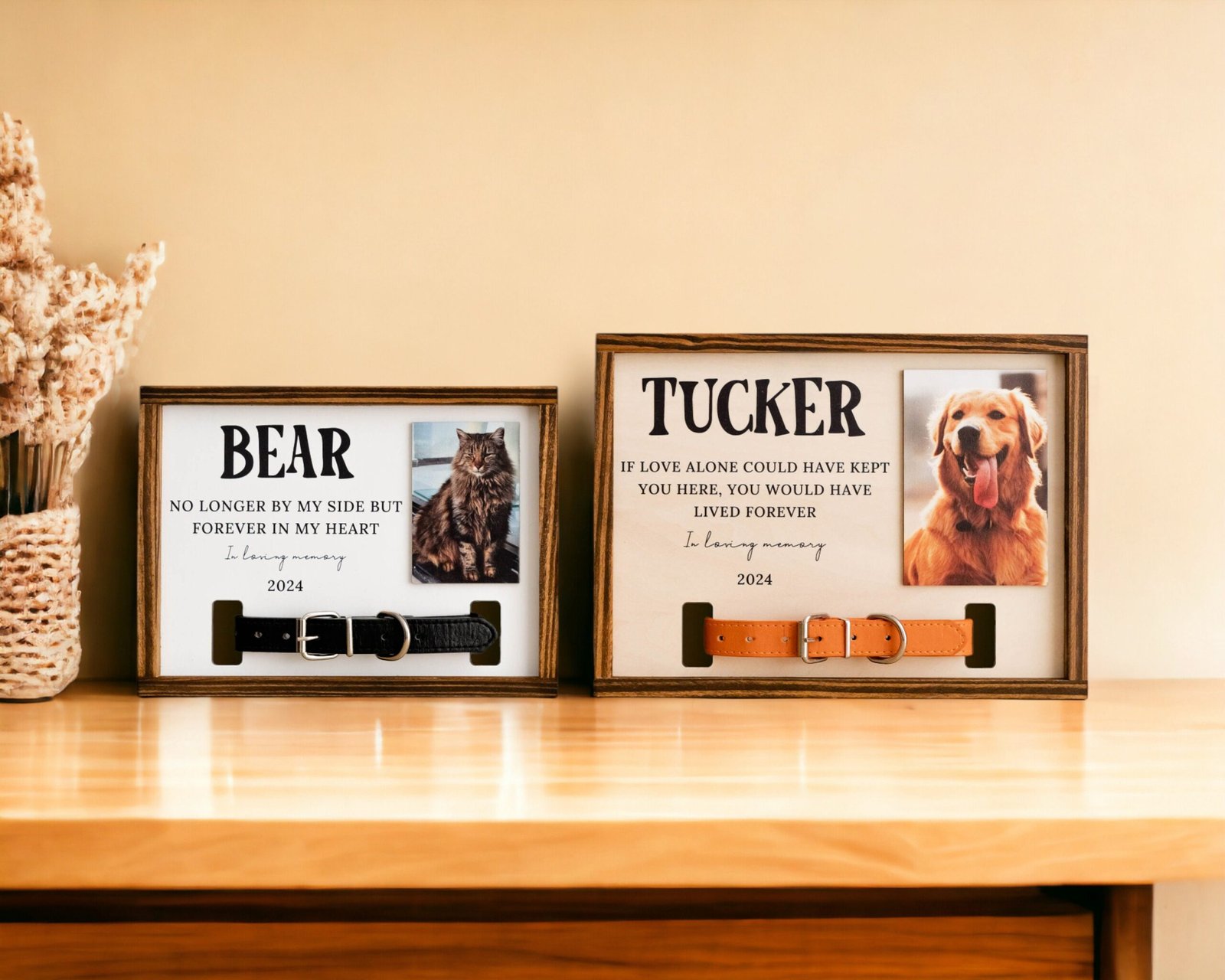 Cherish the memory of your beloved furry friend with our Dog Memorial Sign. This Pet Remembrance Collar Frame serves as a heartfelt tribute, preserving the cherished moments shared. Display your pet’s collar alongside their photo in this Memorial Pet Collar Frame, a touching tribute to their loyalty and love.